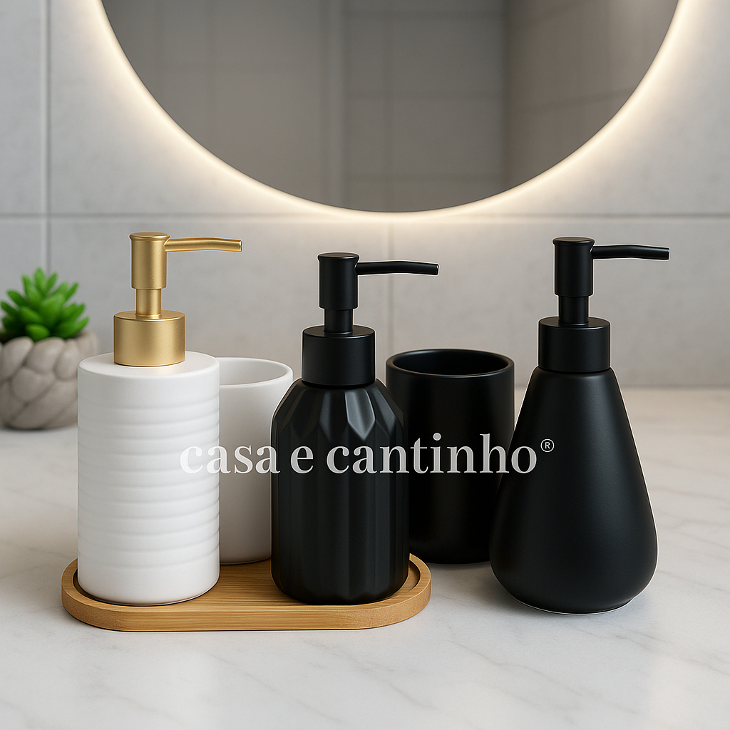 Comprar na ShopeeKit Banheiro Lavabo Porta Sabonete liquido Dispenser e Porta Escova de Dente Cerâmica Decoração