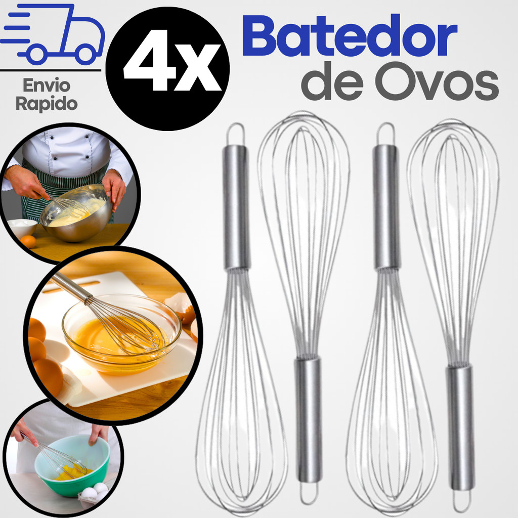 Batedor de Ovos Massas Fuet/ Fouet Inox 25cm KIT 4