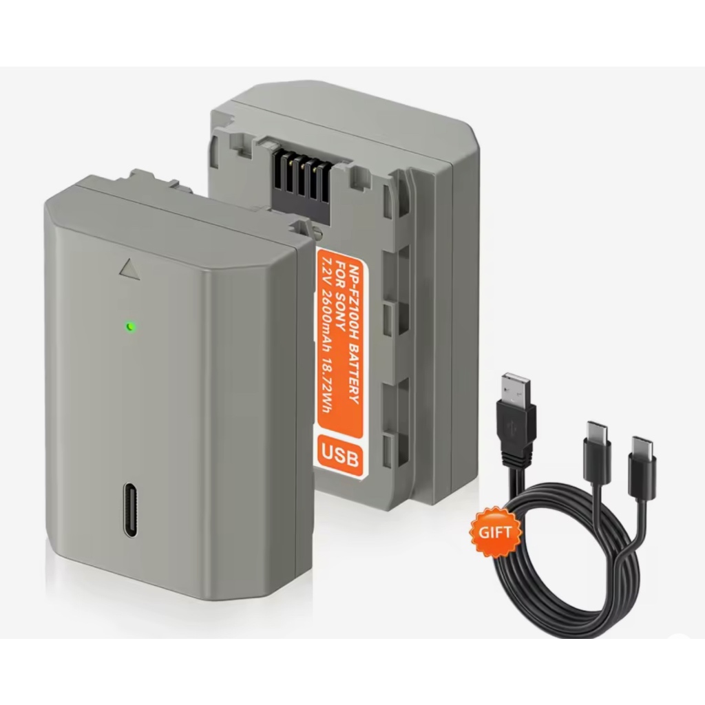 KIT COM DUAS BATERIAS FZ100 TIPO C DIGITAIS 2600 MAH PARA CÂMERAS SONY FX30 A7IV A6700 A7Cii A9S ZVE10 MARK II A6600