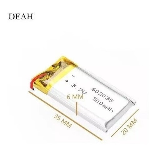 Bateria 602035 Com 2 Fios 500mah 6mm X 20mm 35mm