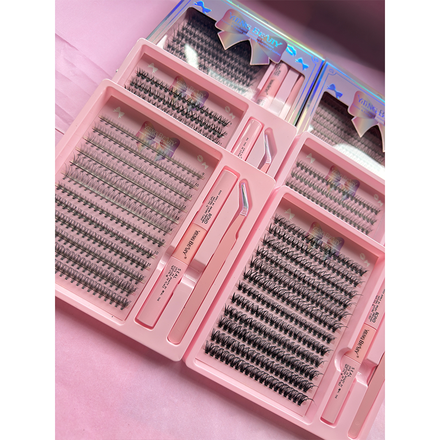kitCílios Postiços De Vison Individuais-Cluster De Volume Marrom e preto Para Extensões DIY