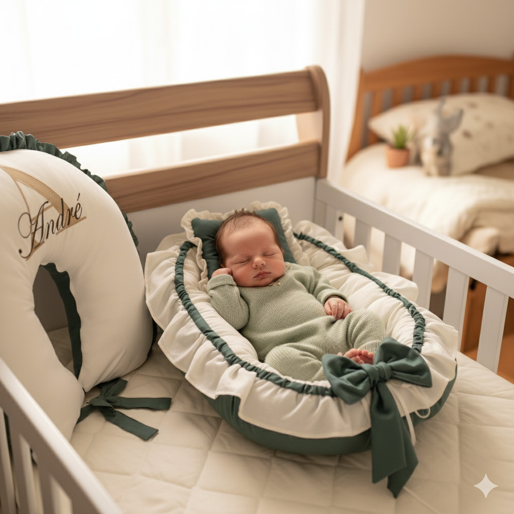 Comprar na ShopeeNinho Redutor De Berço + Almofada de Amamentação com Babado e amarris PERSONALIZADO INICIAL E NOME