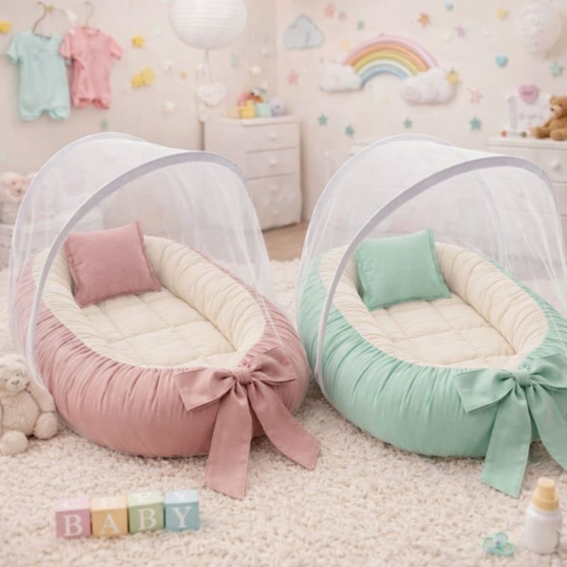 Comprar na ShopeeNinho Redutor de Berço com Mosquiteiro e Travesseiro Acolchoado menino menina