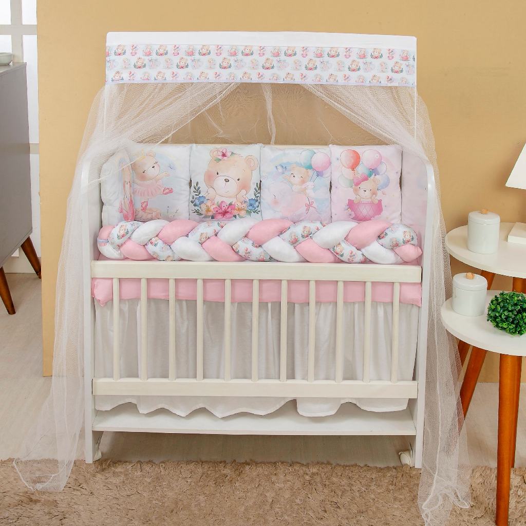 Comprar na ShopeeKit Para Mini Berço 6 Peças Trança E Mosquiteiro Feminino e Masculino Moderno Envio Imediato