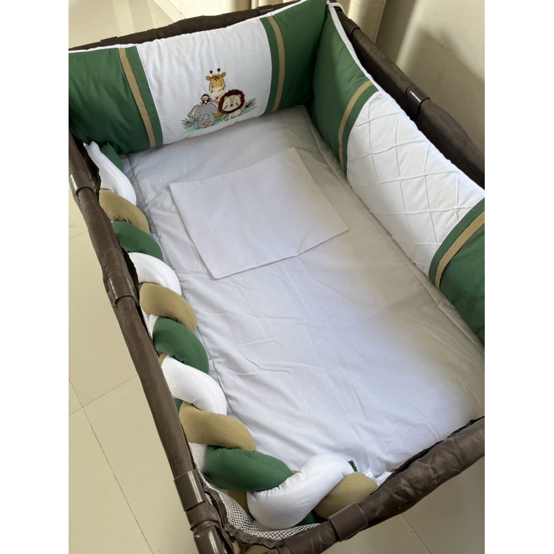 Comprar na ShopeeKit Berço Menino Verde Com Trança 9 peças - Som da Floresta - Safari - Bordado - Algodão - BRINDE BABADO DE BERÇO