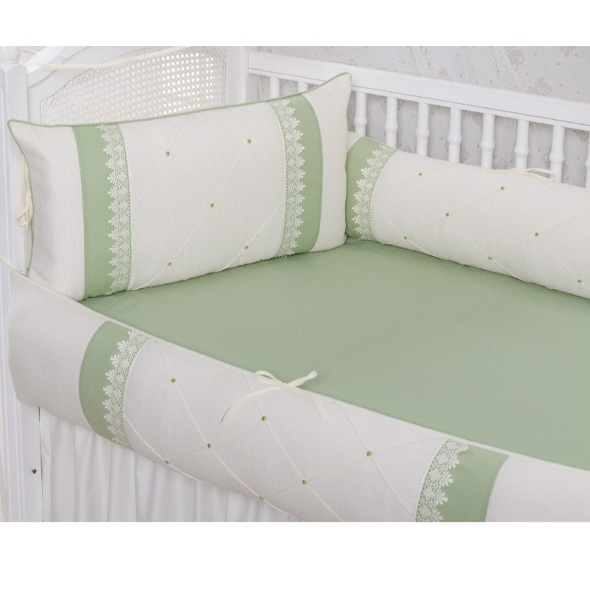 KIT ENXOVAL PARA BERÇO BEBÊ FUNDO PALHA COM VERDE FIORENCE - 519 COM SAIA PALHA