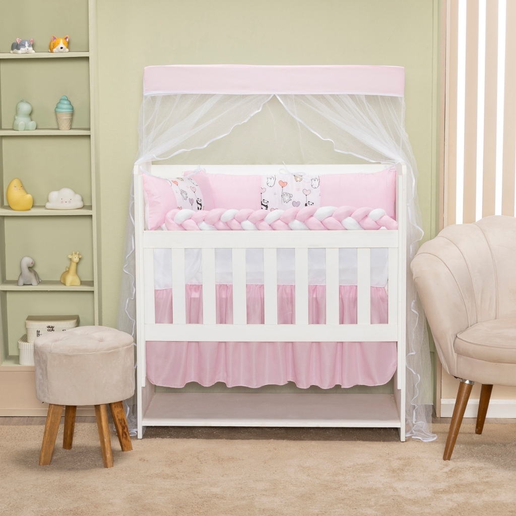 Comprar na ShopeeKit Mini Berço 6 Peças com Trança e Mosquiteiro Várias Estampas Aconchegantes para Bebê