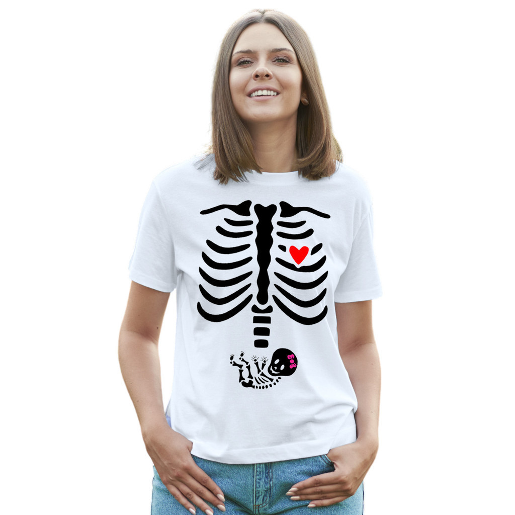 Camiseta Esqueleto Raio x Gestante Grávida Menina Camisa Personalizada Blusa Adulto