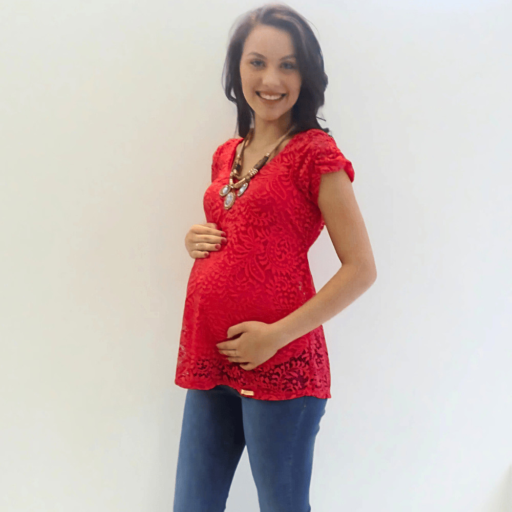 Blusa Gestante Amamentação Canelada Care Vermelha