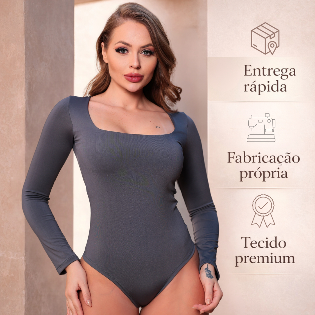 Comprar na ShopeeBody Feminino Suplex Forrado Inverno Manga Longa Gola Quadrada Modeladora Collant Bore