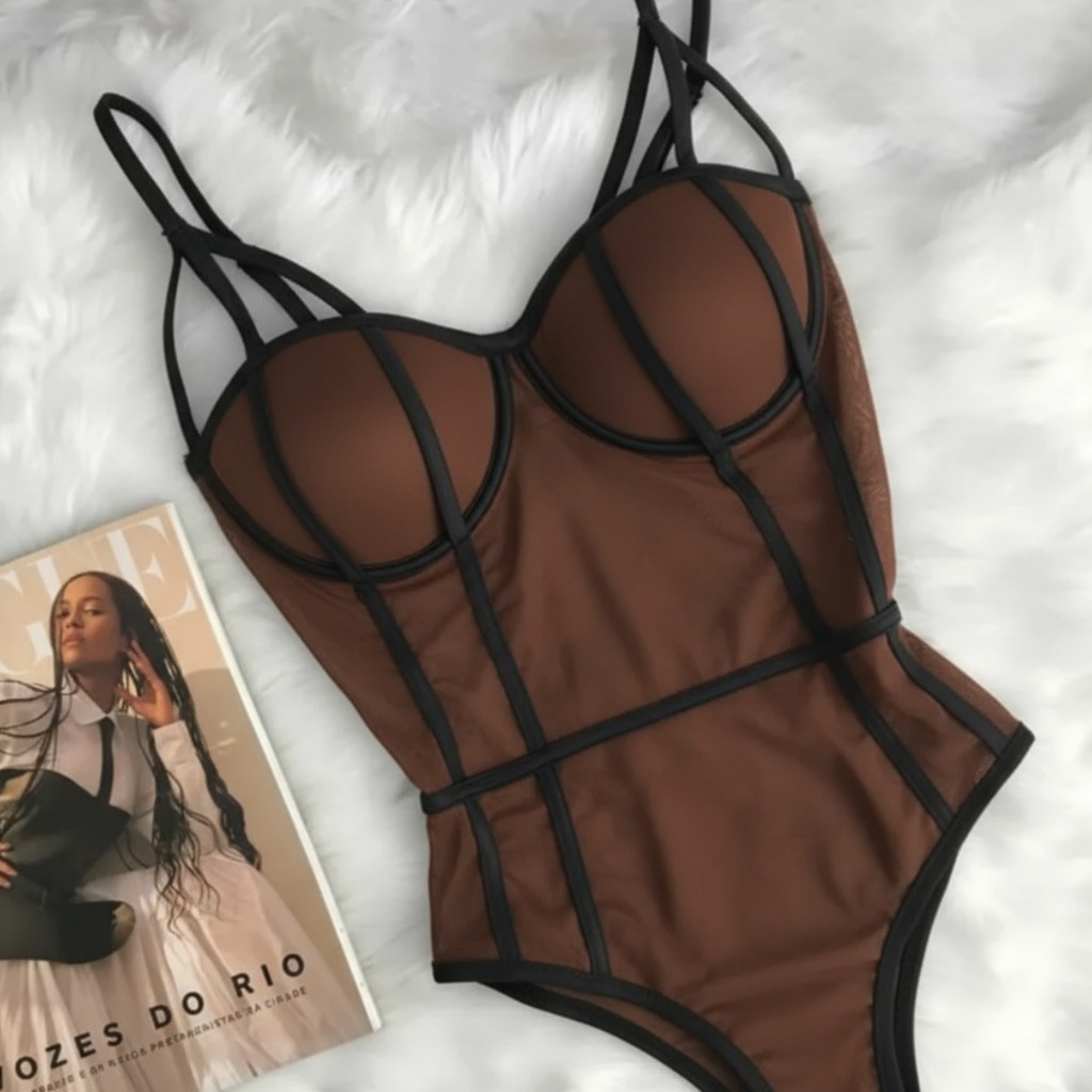 Body Feminino Corselet Tule Sexy Justo Transparente Balada