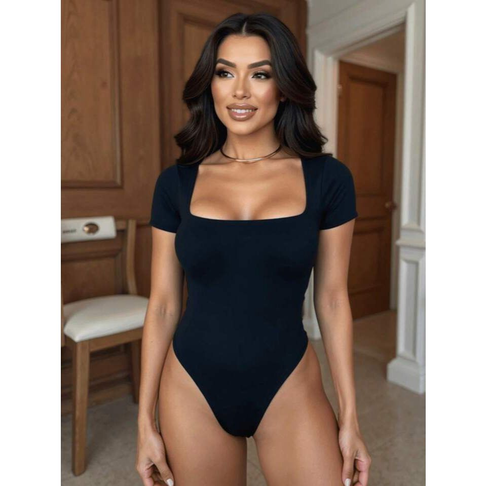 Body Manga Curta Decote Quadrado Suplex Colado Manguinha Basico