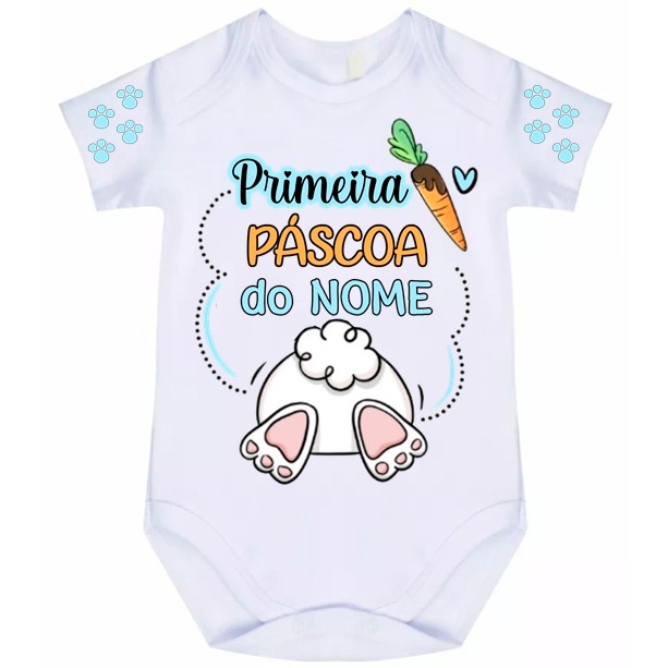BODY BEBÊ PRIMEIRA PÁSCOA COM NOME DO BEBÊ COM DETALHE OU SEM NA MANGA 396A
