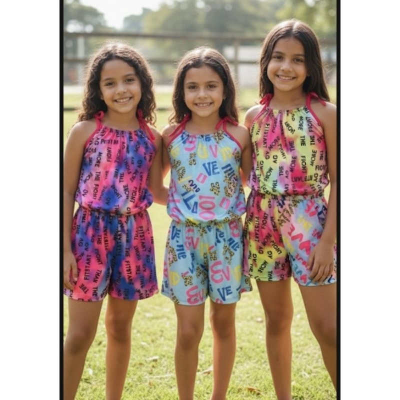 Comprar na Shopeekit 3 Macaquinho Infantil Menina Verão Colorido Estalmpado | Roupa Casual Praia Passeio Confortável Moda Kids