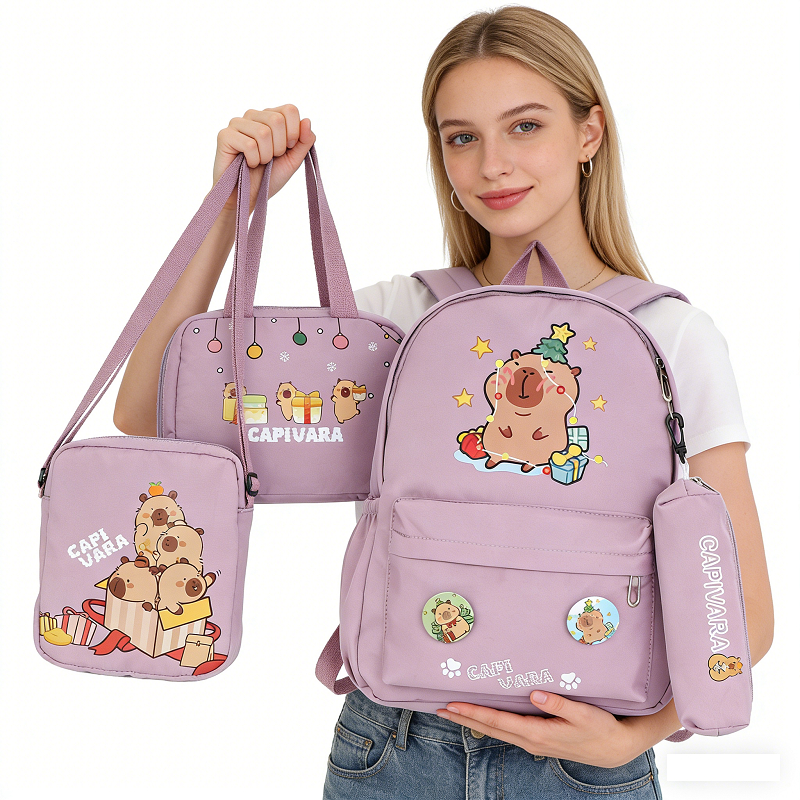 Comprar na ShopeeKit Mochila Menina e Menino Escolar Infantil Bolsa Lancheira Estojo Estampas Capivara