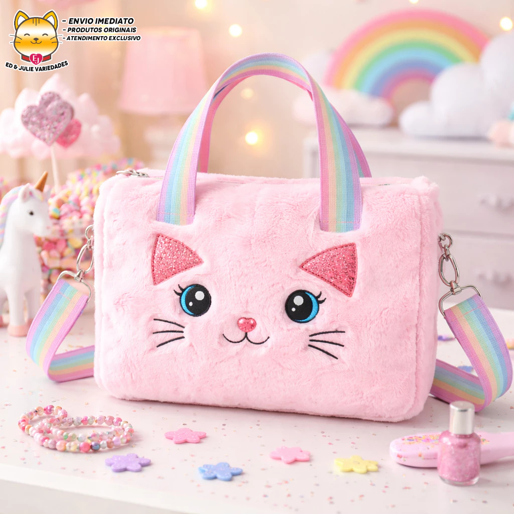 Comprar na ShopeeBolsa de Pelúcia Gatinho com Alça Transversal - Rosa