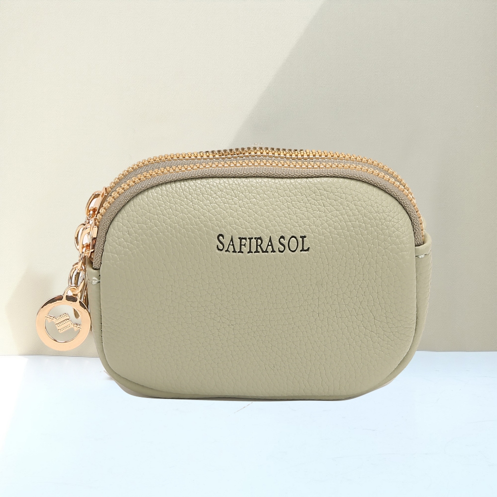 Carteira Feminina Com Zíper De 2 Camadas De Alta Capacidade Genuíno Porta-Moedas Cartões Chaveiro LA351