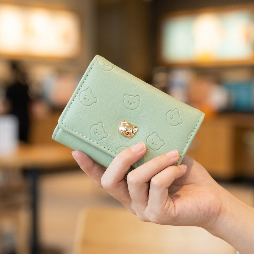 Comprar na ShopeeCarteira Feminina Pequena Dobrável Ursinho Fofo Relevo Porta Cartões Couro PU Compacta 11cm