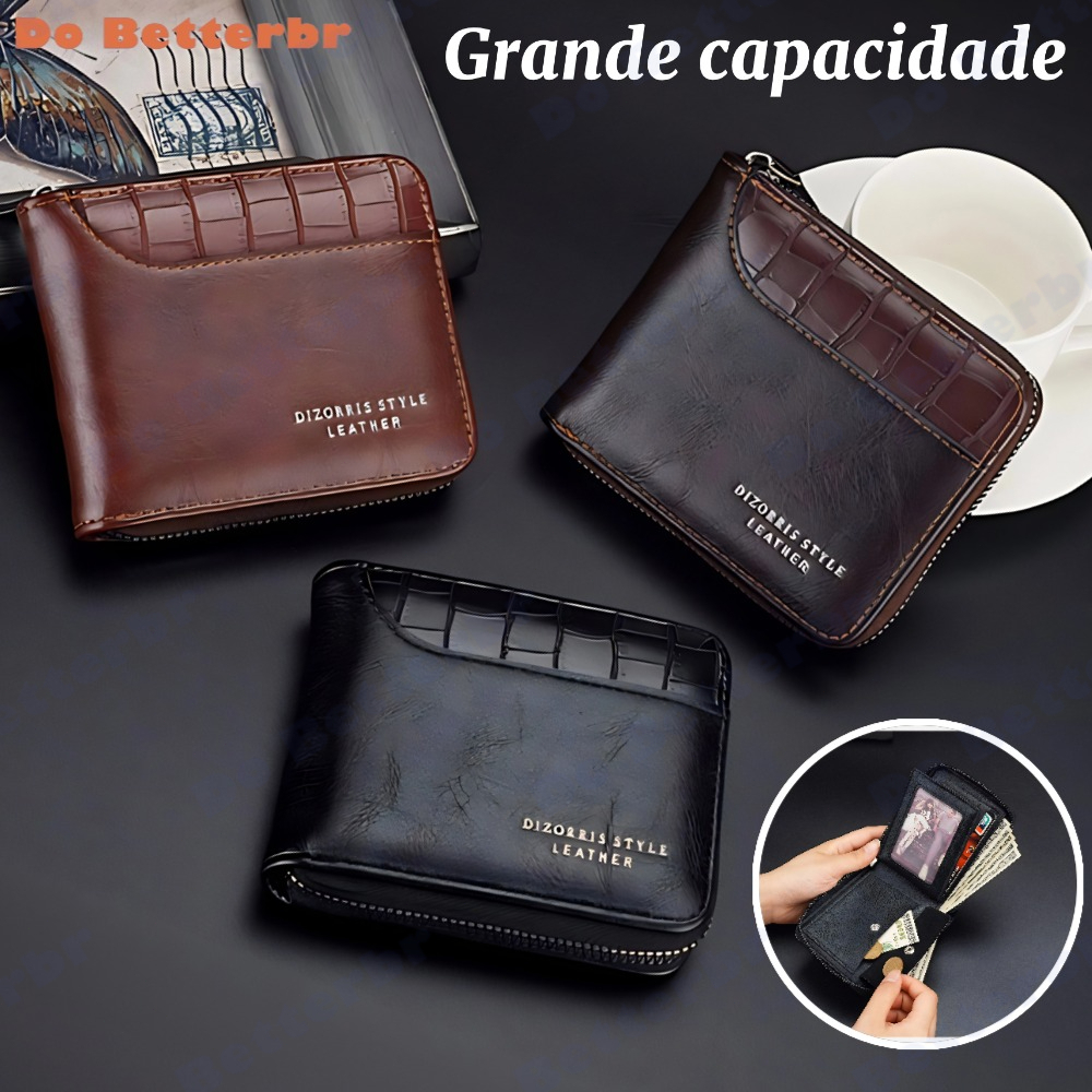 Comprar na ShopeeCarteira Masculina Couro 100% Legitimo Premium Com Fecho Completo com porta cartão