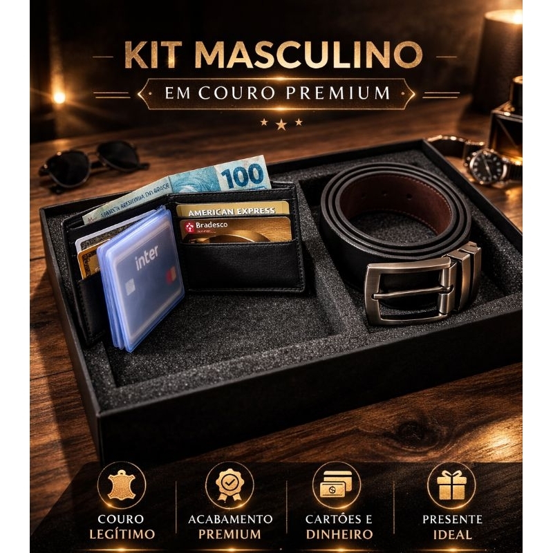 Comprar na ShopeeKit Carteira Masculina Couro Genuíno Original Masculino + Cinto Em Couro Dupla Face Original Resistente