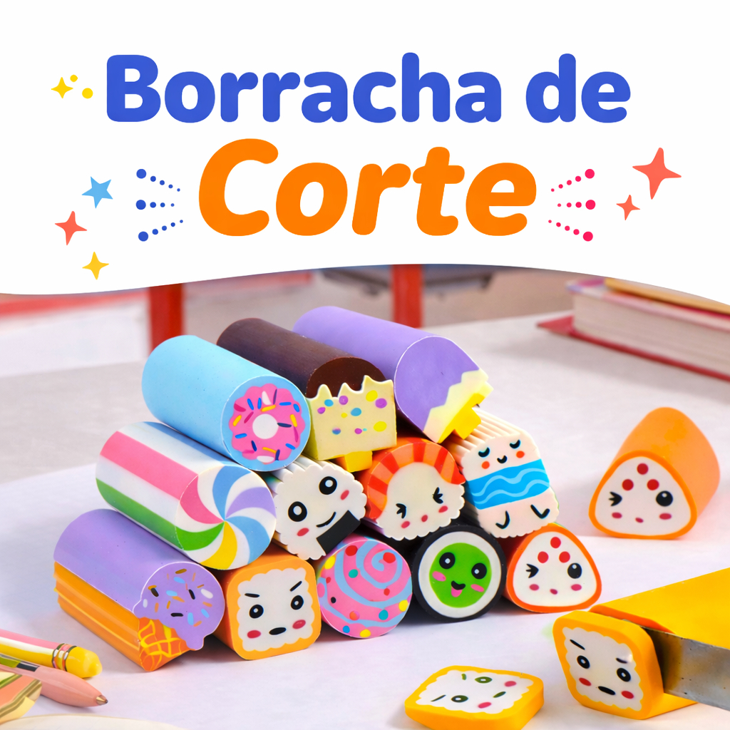 Comprar na ShopeeCaixinha com 6 Borrachas de Corte 3D Comprida Infantil Escolar Colecionável Temas Diversos