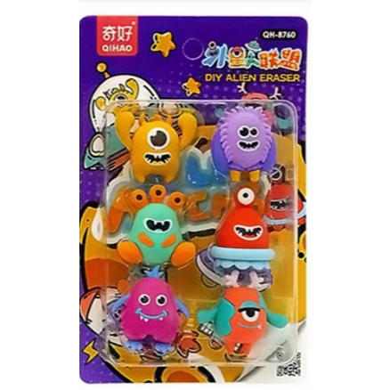 Comprar na ShopeeKit 6 ou 4 Borrachas Divertidas Alien – Coloridas, Kawaii, Papelaria Infantil, Estudante