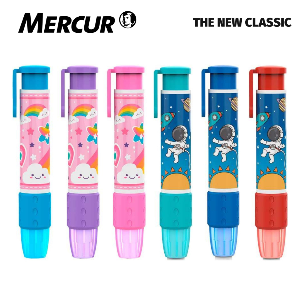Caneta Borracha Decorada Mercur - Cores Mágicas Tom Pastel e Sistema Solar Universo Fofa