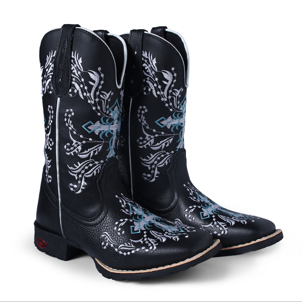 Comprar na ShopeeBota Texana Bico Quadrado Country Em Couro Bordada