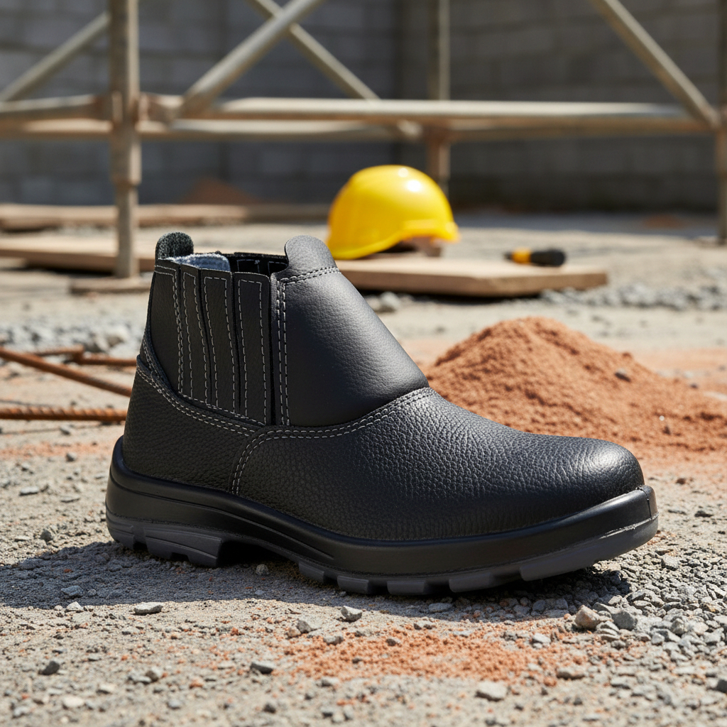 Comprar na ShopeeBotina Bota de Segurança Couro Elástico Bico Aço Bracol Para Trabalho Proteção Epi