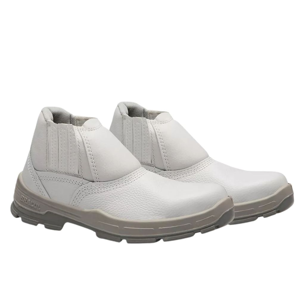 Comprar na ShopeeBotina Bota Branca de Couro Elástico Bico de Aço PU Bidensidade Segurança Confortável BELB
