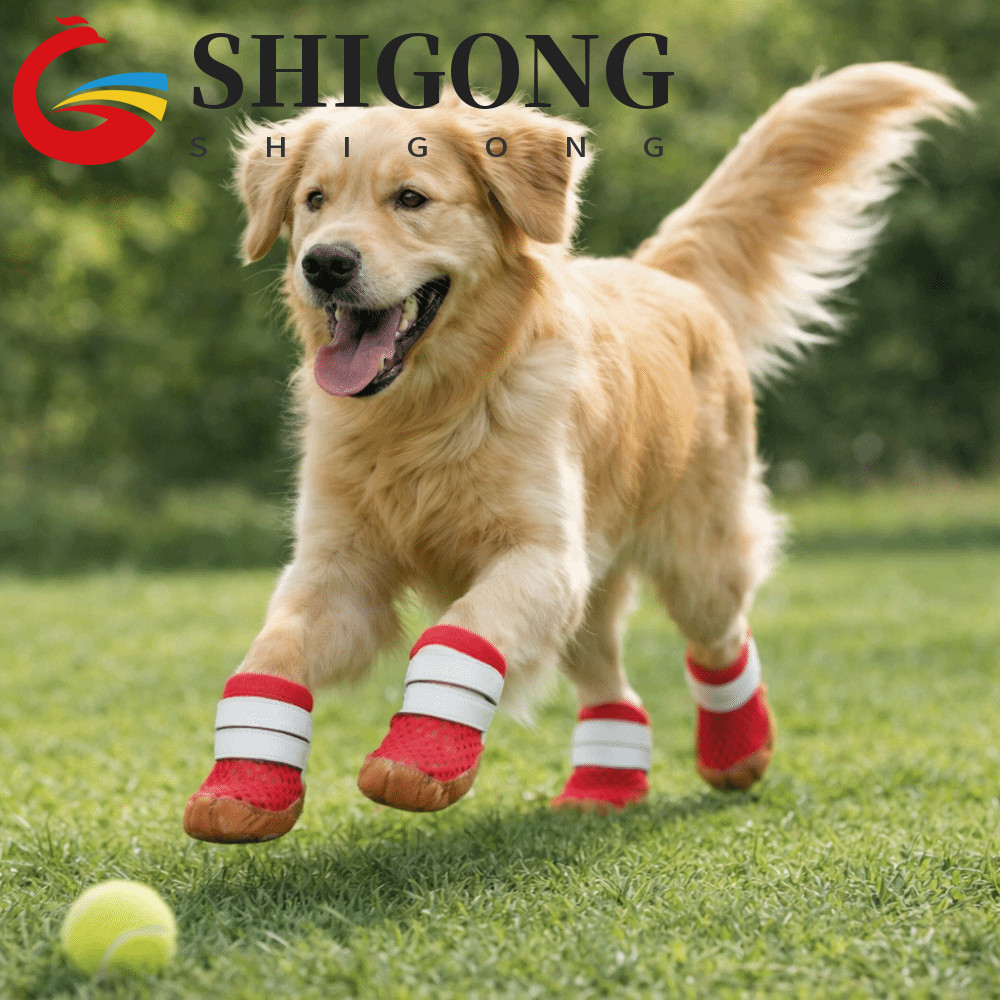 YONGWANG 4 Unidades/Conjunto Sapatos De Malha Para Cães , Rede Respiráveis Antiderrapantes Botas Curtas Reflexivas Resis