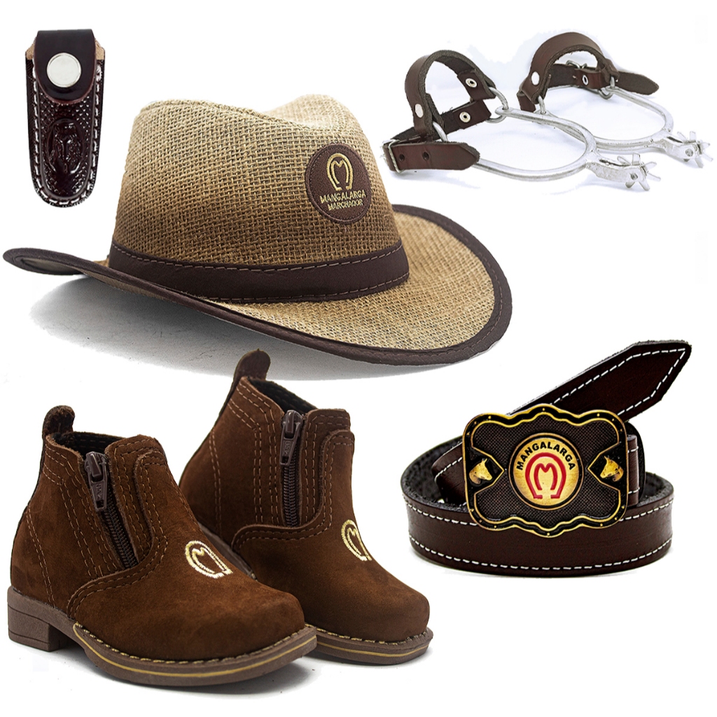 Comprar na ShopeeKit Infantil Botina Chapeu Cinto Bainha Espora Country