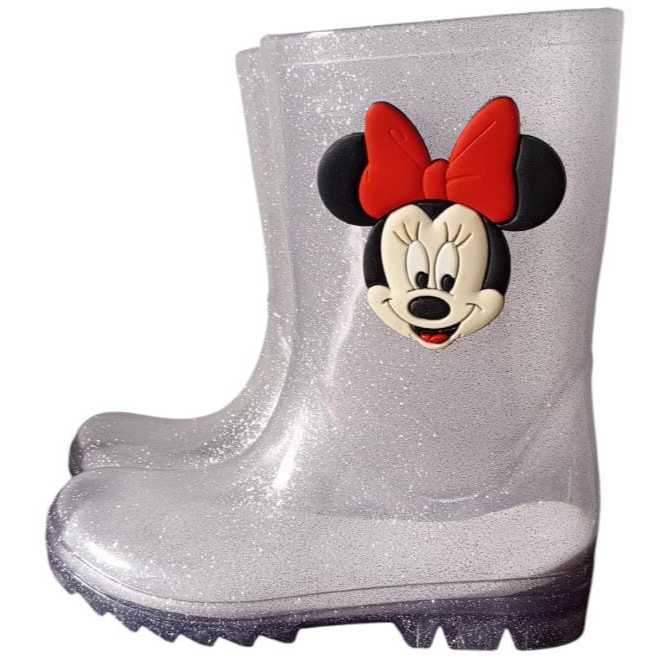 Galocha Cano Alto Bota de Chuva Menina Minie Rosto Laço Vermelha Leve Confortável Antiderrapante Infantil Impermeável