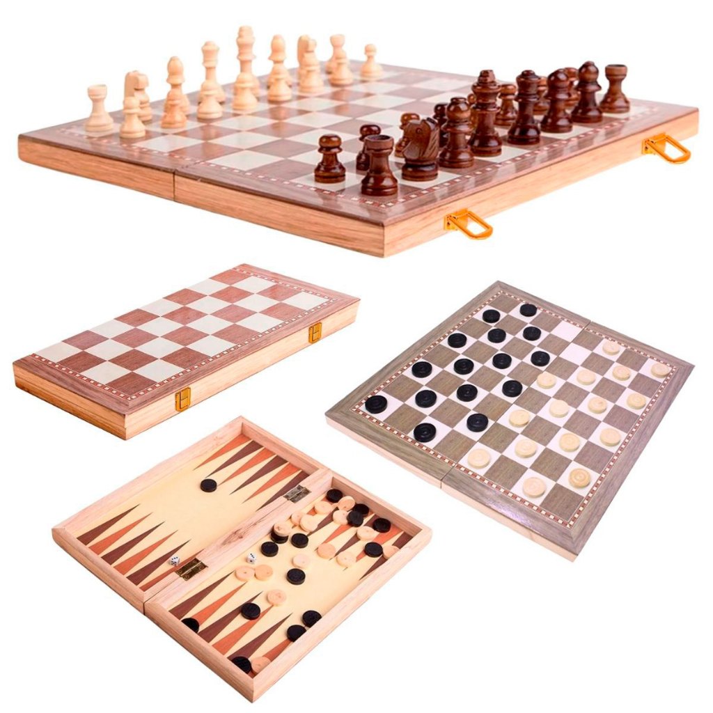 Comprar na ShopeeJogo De Xadrez Dama Gamão 3 Em 1 Tabuleiro De Madeira