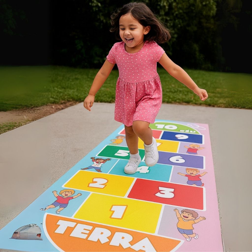 Comprar na ShopeeTapete Amarelinha Infantil em Lona Grande Lavável e Resistente | Dobrável, Educativo para Crianças