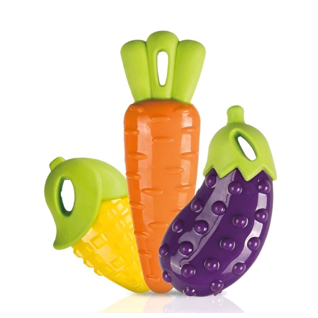 Kit 3 Brinquedos Pet Mordedor Para Cachorros Petisco Apito Milho Berinjela Cenoura Brinquedos cães