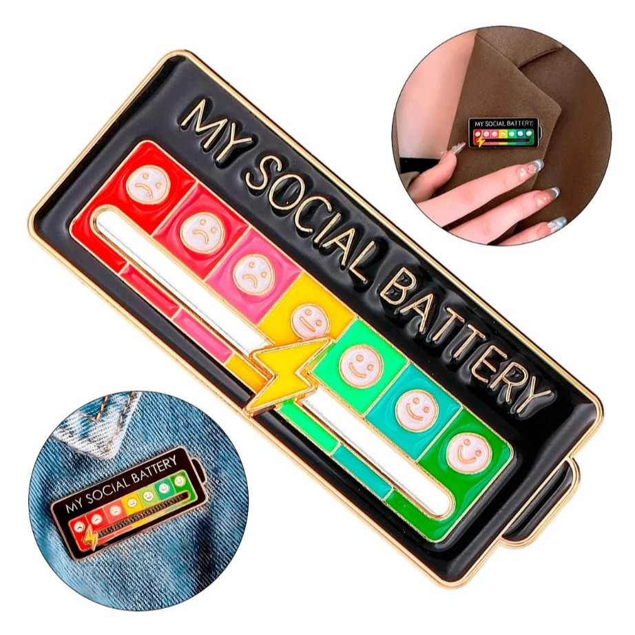 Comprar na ShopeePin My Social Battery Broche Bateria Social Mood Geek Pino Deslizante Indicador de Bateria Social