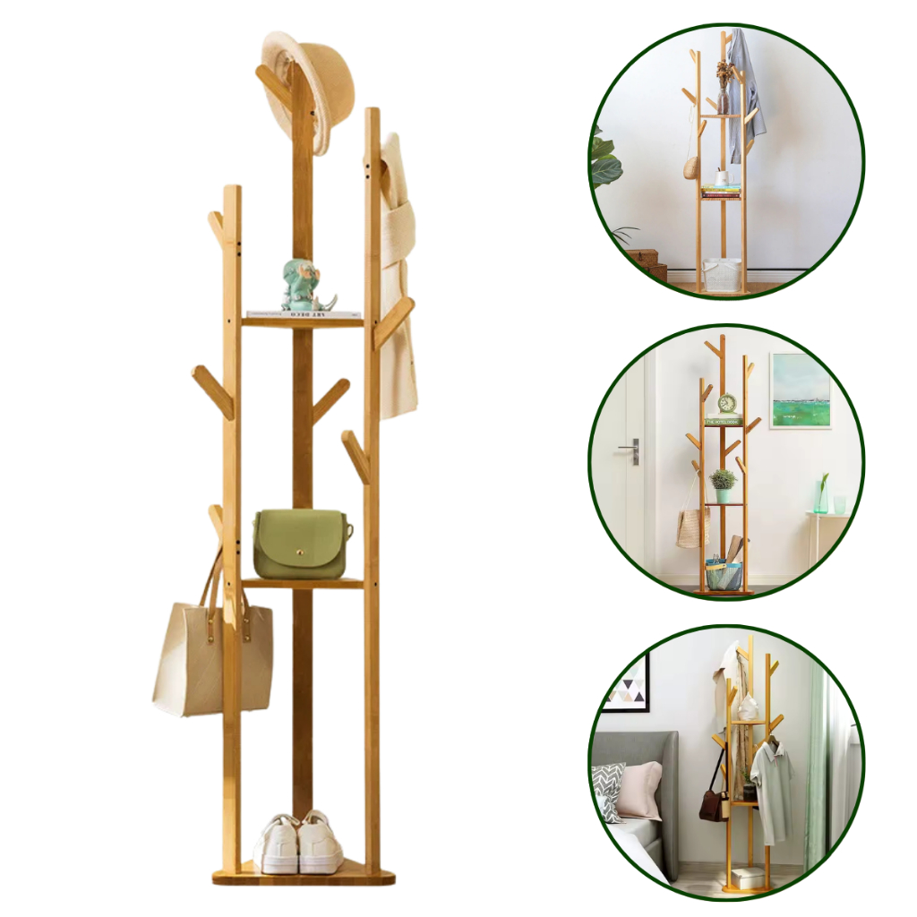Mancebo Cabideiro Bambu Chão Arara Roupas Prateleira 164,5cm