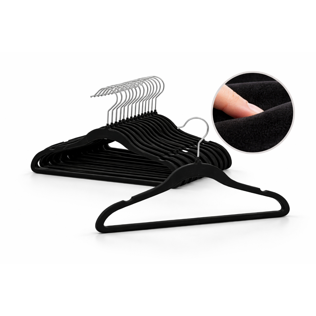 Comprar na ShopeeKit Cabide Veludo Adulto Antideslizante Preto Slim Fino Roupas Seda Resistente Organizador 40 peças