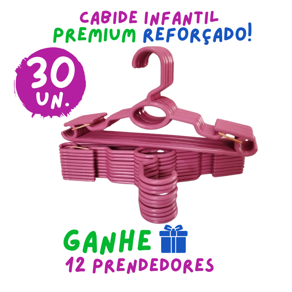 Kit 30 Cabides Infantil Bebê Baby Reforçado Rosa Plástico Cruzeta Roupa Resistente Premium