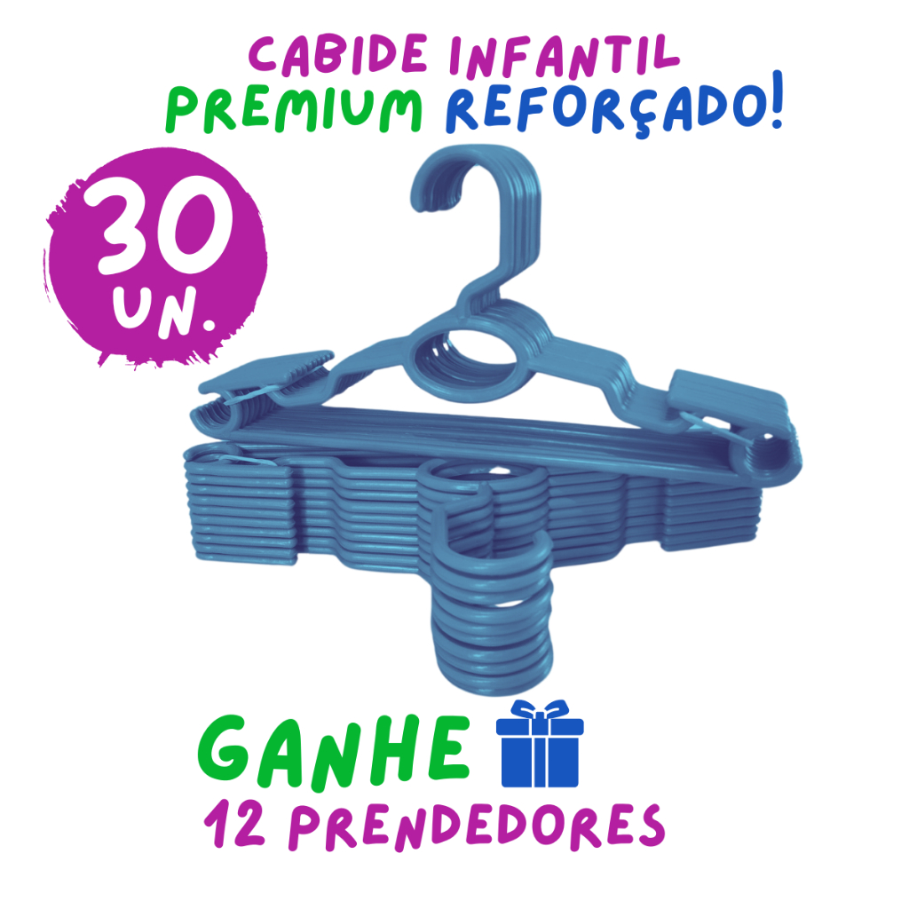 Comprar na ShopeeKit 30 Cabides Infantil Bebê Baby Reforçado Azul Plástico Cruzeta Roupa Resistente Premium