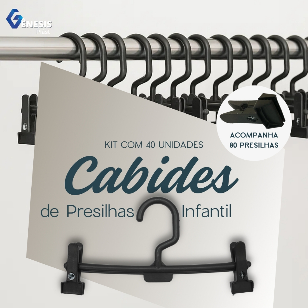Comprar na ShopeeKit Cabide Infantil 40 Unidades 80 Presilhas Preto Organizar Roupas Loja Closet Vestido Calças