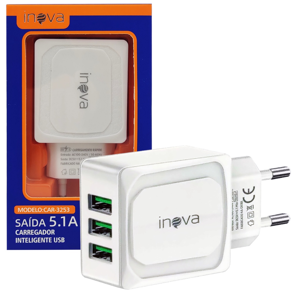 Comprar na ShopeeCarregador Celular 3 Entradas USB Fonte Tomada 5.1A Turbo Rápida 9001.