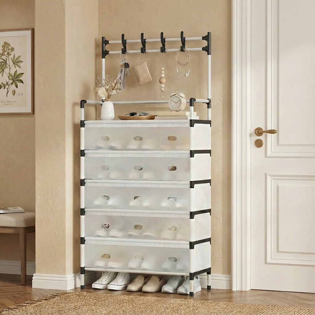 Sapateira de Plástico Anti-Pó com e Cabideiro - Organizador Vertical para Calçados e Acessórios