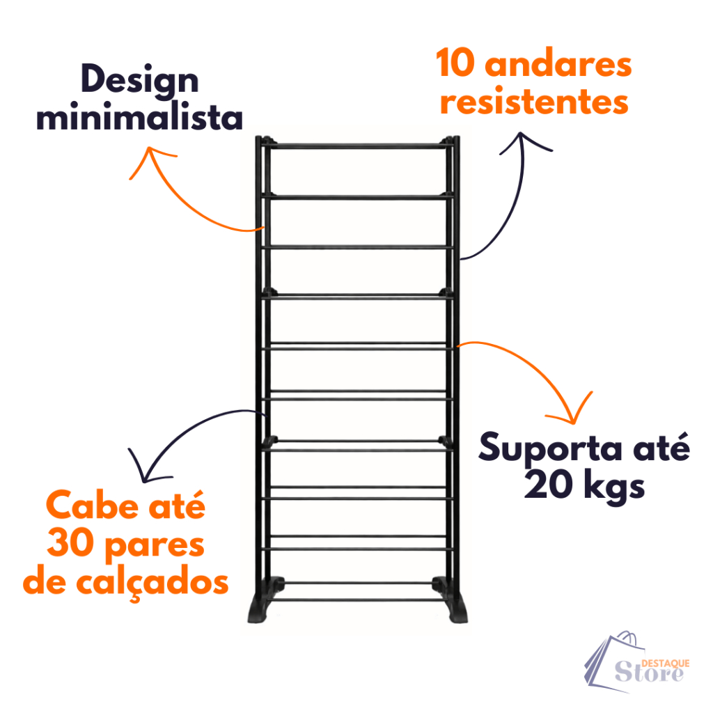 Comprar na ShopeeSapateira 10 Andares 30 Pares | Leve, Compacta e Resistente | Fácil Montagem | Envio Imediato