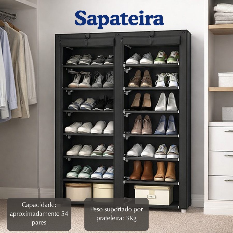 Comprar na ShopeeSapateira Organizador 9 Prateleiras Duplo Dobrável 9 Andares duplo Fechamento Com Capa b