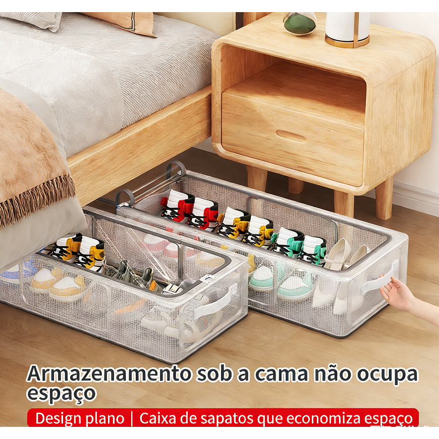 Caixa de sapatos dobrável com zíper, sapateira transparente, empilhável