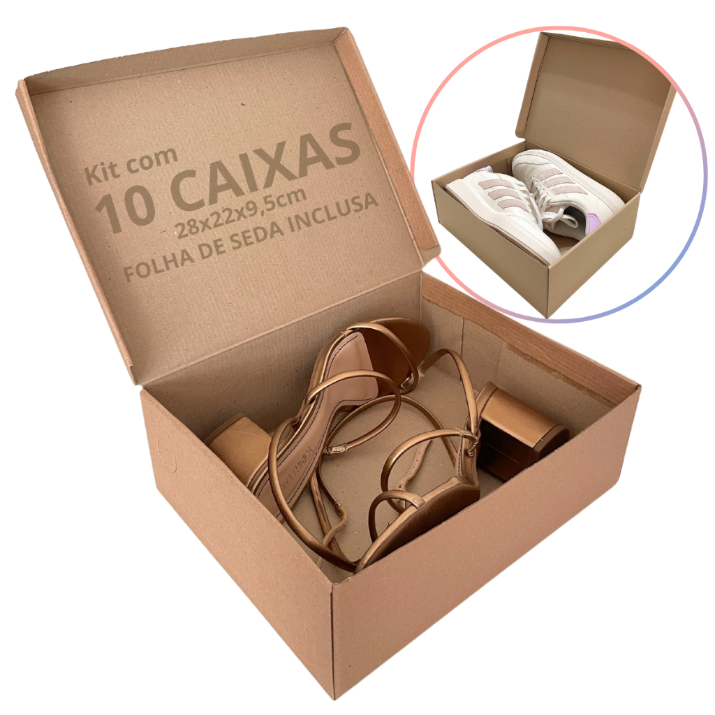 10 Caixas Papelão Sapato 28x22x9,5cm Com Seda