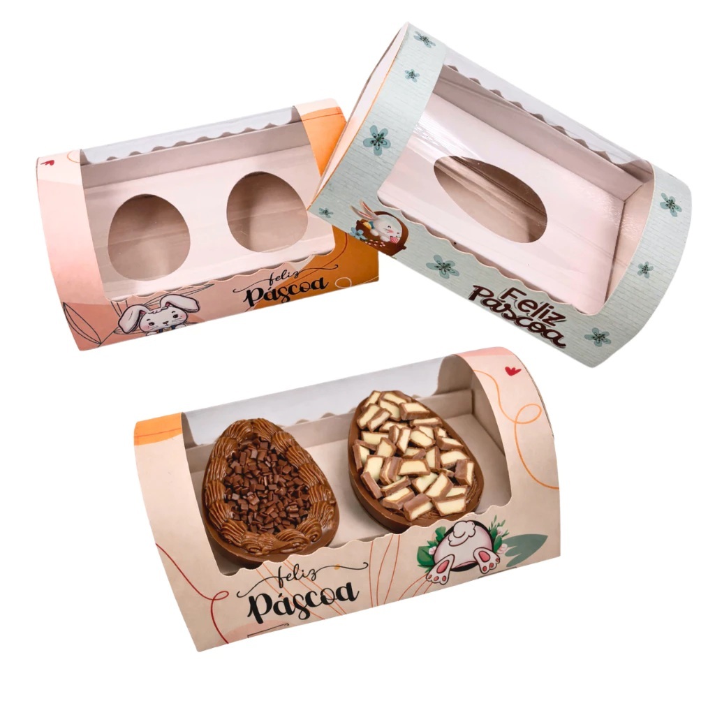 Novidade! 10 Unidades Caixa Deslizante Curve Para Ovo De Colher Pascoa Embalagem Degustação 1 ou 2 Ovo / Cavidade de 50g