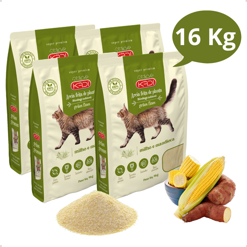 Comprar na ShopeeKit 4 Areia Higiênica Natural Biodegradável de Grãos Finos de Milho e Mandioca para Gatos Kadi 16 kg